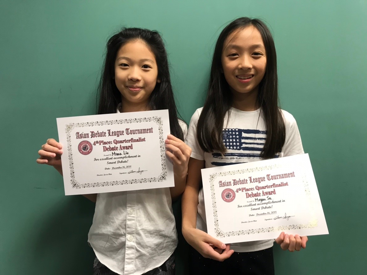 Debate Team 4.1 17 Dec 2018 2018-12-16 ADL Tournament Winners: Sophie Hsu & Ariel Ting (NPF); Iris Tsai & Ashley Ting (SD)! 1188 × 890