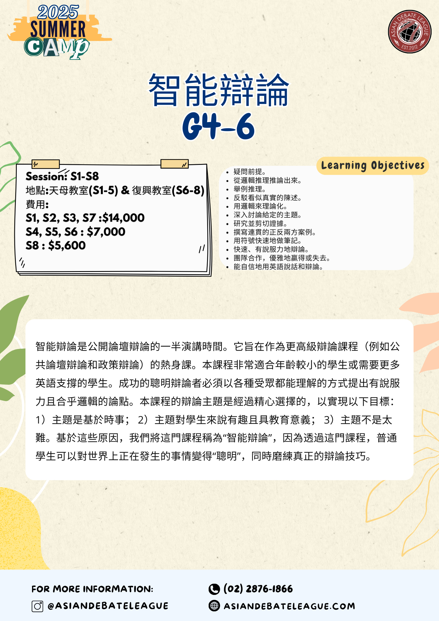G6+ ADL Harvard Policy Debate Camp : 7/28-8/3 @Tianmu Classroom(天母)